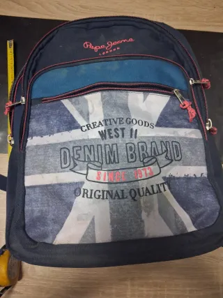 Mochila con diseño de la Union Jack de Pepe Jeans London. - Estampado de la bandera británica. - Logo de Pepe Jeans London. - Cierre de cremallera. - Medidas 42 cm de alto 20 cm ancho. - 4 bolsillos gran capacidad. -Tambien la tengo igual con carro incorporado