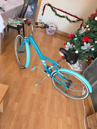 Bicicleta infantil B'TWIN en color azul, ideal para niñas. - Rueda de 24 pulgadas. - Incluye cesta delantera. - Guardabarros delantero y trasero. - Pata de cabra - Timbre