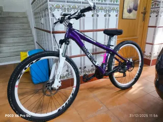 Bicicleta Jlwenti en color morado, ideal para niños. - Ruedas aluminio de 20 pulgadas. - Diseño deportivo. - 5 velocidades. - Frenos v-brake que aportan una frenada precisa y segura. - En perfecto estado, lo único que uno de los puños del manillar está un poco desgastado como se ve en la última imagen.