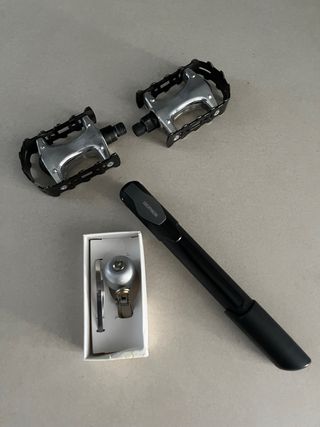 Par de pedales automáticos para bicicleta, ideales para ciclismo. - Diseño robusto y duradero. - Mecanismo de enganche y liberación. - Tensión de muelle en perfecto estado