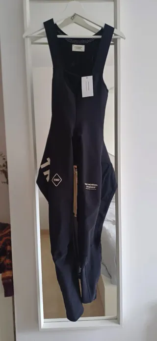 Conjunto de culotte con tirantes, un solo uso. y regalo manguitos de ciclismo en color verde lima y negro. - Culotte con tirantes y detalles en blanco y gris. - Manguitos a juego con logo X-Tiger Cycling.