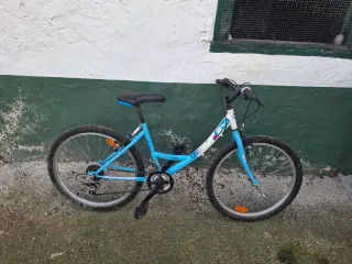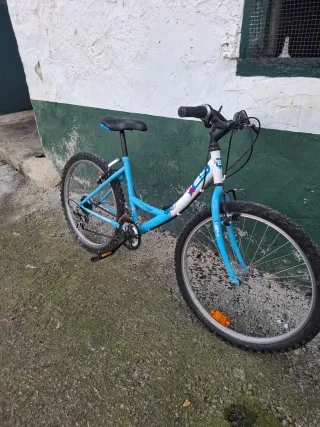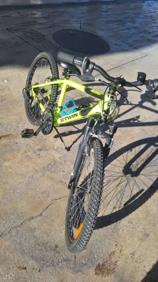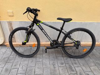 Bicicleta infantil de la marca Rockrider, ideal para iniciarse en el ciclismo. - Cuadro de aluminio. - Ruedas de 24 pulgadas. - Frenos V-brake. - Suspensión delantera.