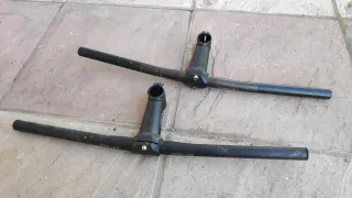 Se vende un par de manillares de bicicleta en aluminio, cada uno con su potencia y tornillería. No se venden por separado. Precio por ambos manillares - Color negro.