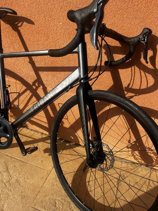 Bicicleta de carretera Triban 500 en color negro. Ideal para iniciarse en el ciclismo. - Cuadro de aluminio. - Frenos de disco. - Transmisión Shimano. Bicicleta Triban 500 en estado casi nuevo, muy poco uso. Incluye soporte para bidón / agua. Revisión al día, lista para usar 🚴♀️ Ideal para rutas, ciudad y entrenamientos. Talla: M Ubicación: Palma de Mallorca (recogida en mano) Precio: 550 € (negociable)