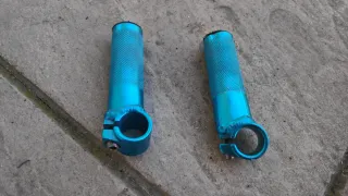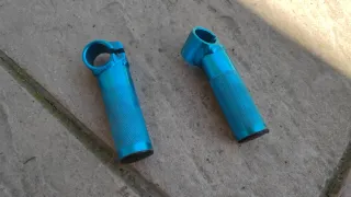 Par de acoples para manillar de bicicleta en color azul. Aluminio - Diseño molereado para mejor agarre. - Incluye tornillería para sujeción.