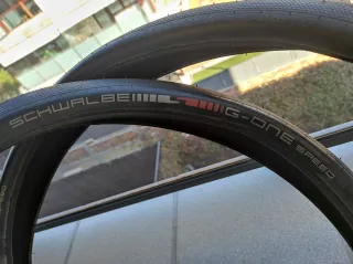 Cubiertas Schwalbe G-One Speed para gravel. Muy poco uso, con pelillos aún. Interior limpio. Muy cómodas por el ancho y rodar rápido por carreteras en mal estado y pistas limpias. - Tamaño: 700x50. - Tecnología Tubeless Ready (TR).