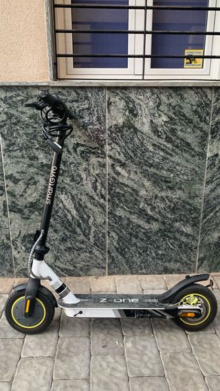Patín eléctrico SmartGyro Z-One en color blanco y negro. (negociable) - Diseño moderno y deportivo. - Ruedas con detalles amarillos. - Manillar plegable para facilitar su transporte.