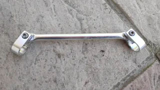 Manillar y potencia de bicicleta clásica de la marca Sakae. En muy buen estado. Ancho del manillar 39 c-c Potencia 22.2 y 90mm de largo - Fabricado en aluminio. - Diseño curvo. - Diámetro de potencia: 25.4 mm.