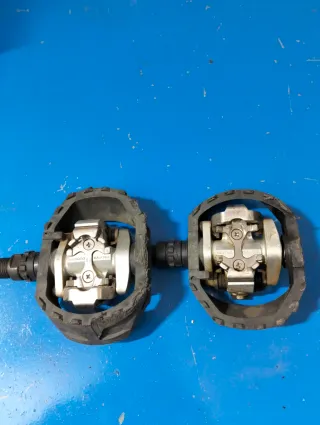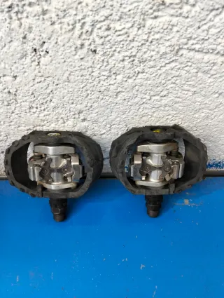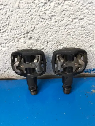 Se venden pedales automáticos Shimano con plataforma. - Diseño robusto. - Mecanismo de enganche. - Funcionales con algún roce.