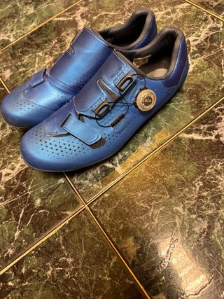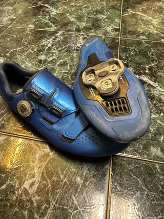 Zapatillas de ciclismo de carretera Shimano en color azul. - Cierre BOA. - Talla 44. Incluida cala look keo grip Usadas tres salidas