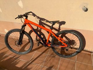 Bicicleta de muntanya Scott de taronja i blau fosc talla S - Cuadro de alumini - 2 plats i 8 pinyons - Frens de disc Hidraulics En bon estat