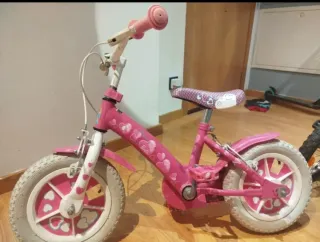 Bicicleta infantil en color rosa, en excelente estado. - Diseño con corazones y detalles. - Ruedines incluidos.