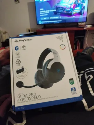 Auriculares inalámbricos Razer Kaira Pro Hyperspeed para PS5. - Conectividad inalámbrica 2.4 GHz y Bluetooth. - Tecnología Hypersense. - Conectividad multi-plataforma USB-C. - Diseño oficial licenciado por PlayStation.