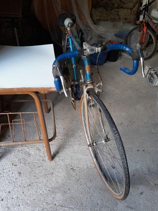 Bicicleta de carretera antigua de color azul Airolg Las marchas van en las barras del cuadro en vez de en el manillar. Funciona perfecto Solo necesita inflar las ruedas y un lavado lavado Vendo por falta de uso