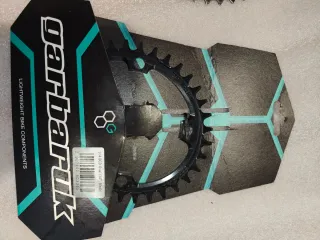 Plato Garbaruk ovalado para bicicleta, con un BCD de 104mm y 34 dientes en color negro. - Diseño ovalado. - BCD: 104mm. - Número de dientes: 34T. - Color: Negro.