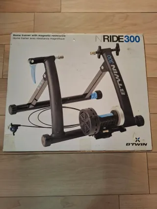 Rodillo de bicicleta Btwin InRide en su caja original. Tiene algunos desperfectos en la caja, como se puede apreciar en las fotos. - Rodillo con resistencia magnética. - Marca: Btwin. - Modelo: InRide.