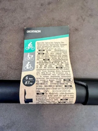 Hinchador de mano Decathlon para bicicletas.