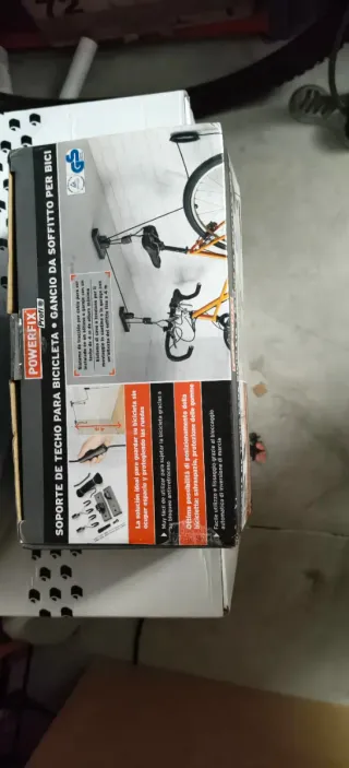 Soporte de techo para colgar bicicletas de la marca Powerfix. - Ideal para ahorrar espacio. - Protege la bicicleta. - Incluye herrajes para montaje. Tengo tres si te llevás Los tres te los dejó a 10 e cada uno