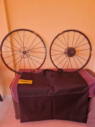 Llantas prácticamente nuevas, están en perfecto estado, con cassette y discos de 160. son muy ligeras 1525g el par, ideales para competir. El sistema es compatible con cierre rápido y eje pasante de 15 mm delante y cierre rápido y eje pasante de 142 mm detrás. (5x100 y 12x142). Ideales también para gravilla. Nuevas costaron 950€.