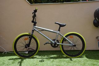 Bicicleta BMX en muy buen estado, lista para rodar. - Color plateado. - Ruedas de color amarillo. - Manillar negro.