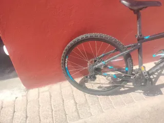 Bicicleta de montaña Rockrider en talla S. Ideal para iniciarse en el ciclismo. - Cuadro de aluminio. - Suspensión delantera. - Frenos de disco. - Ruedas de 27.5 pulgadas.