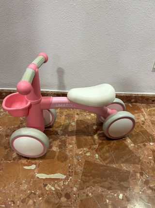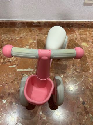 Bicicleta de aprendizaje de color rosa, ideal para los primeros paseos. - Diseño de tres ruedas. - Asiento blanco. - Manillar con agarres. - Cesta delantera. Muy bien cuidada ya ke solo sea usado en casa.