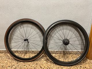Ruedas campagnolo shamal ultra bujes de carbono, cubiertas nuevas Schwalbe ultremo ZX 700x23,piñones campagnolo Record 11V tienen una salida se venden por lesion (estan nuevas)