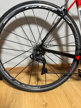 Bicicleta de carretera Wilier Triestina. - Cuadro de carbono. - Diseño en rojo y negro. - Sillín blanco. -Montada en 105 - talla M - funcionando todo bien
