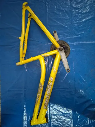 Chasis de bicicleta de la marca Globertroter. - Fabricado en aluminio. - Color amarillo. - Bielas y plato - talla M L 50ctm - Para ruedas de 26 pulgadas - Largo tija 15centimetros