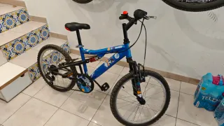 Bicicleta infantil de 20 pulgadas con doble suspensión. La suspensión trasera es ajustable en dureza. Con cambio de 6 marchas trasero. Ruedas en buen estado. - Color azul. - Diseño deportivo. - Ideal para terrenos irregulares. SOLO TRATO EN MANO. NO HAGO ENVÍOS