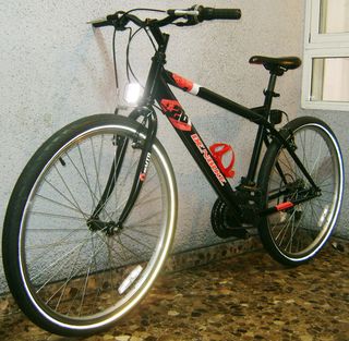 Bicicleta Rockrider ST100 de 26" con las siguientes mejoras: - Acoples de manillar Rockrider para pendientes pronunciadas. -Velocimetro/Cuentakilómetros magnético y extraible. -Sillín de gel (anatomía femenina). Incluye Casco, herramienta de reparación, sillín original, cámara de recambio y stand para garaje.
