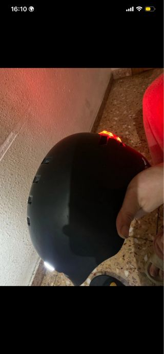 Casco negro para patinete eléctrico con luces traseras rojas. - Diseño moderno y seguro. - Luces LED integradas para mayor visibilidad. Esta como nuevo sin ningún golpe ✨ 🚩Casco con luz delantera led y con trasera 3 opciones (fija, intermitente lenta, intermitente rápida).🚩
