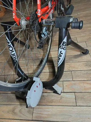 Rodillo para bicicleta deportiva, ideal para entrenamientos en interiores. - Compatible con bicicletas de carretera y montaña. - Estructura robusta y estable. - Fácil de montar y desmontar. Marca Minoría B60 Japón. Gran rodillo de alta calidad con 3 posiciones y ajuste de Rueda trasera. Con apollonpara la rueda delantera. Grandes entrenos de gran calidad. Todo tal y como se ve en las fotos. Cambio manual sin cables. Precio muy económico. Usado muy poco por cambiar por uno superior. Lo usan los profesionales para entrenamientos de fondo Se hacen envíos