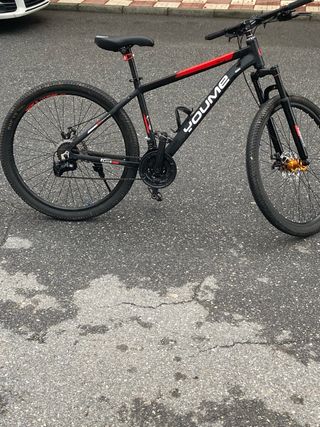 Bicicleta de montaña con un diseño moderno y deportivo. - Cuadro de aluminio negro con detalles en rojo. -7 marchas - Frenos de disco. - Suspensión delantera. Bicicleta niño/hombre Se ve el albolote granada