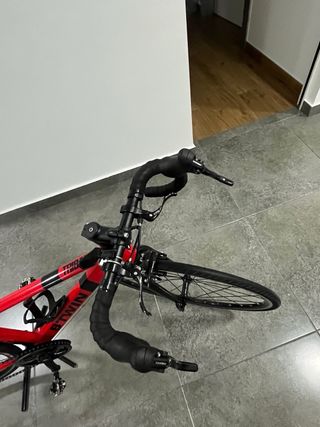 Bicicleta de carretera de color rojo, muy bien cuidada los piñones los lleva mas desarollados y los pedales se cambian a unos normales -cuadro de aluminio -color rojo Solo se vende en mano