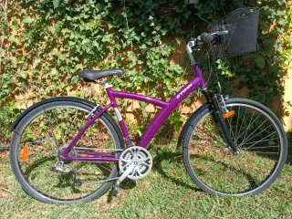 Bicicleta Btwin Original 500 en color morado, equipada con cesta. - Modelo Original 500. - Color morado. - Incluye cesta delantera.