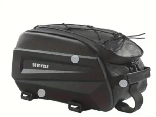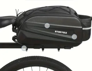 Bolsa trasera para bicicleta de la marca DTUCYCLE. Diseñada para ser práctica y resistente. - Material duradero. - Diseño con correas elásticas superiores. - Detalles reflectantes para mayor visibilidad. - Bolsillo lateral de malla. ENTREGA EN MANO. NO SE ENVÍA