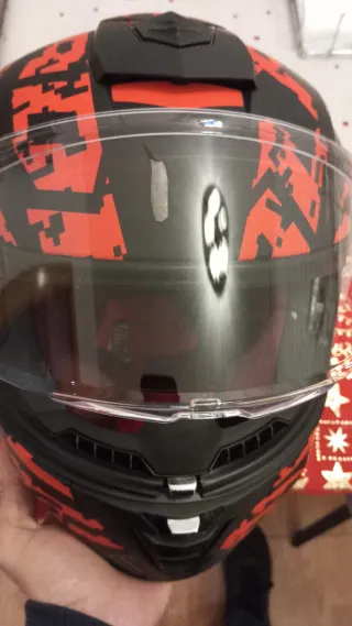 Casco de moto con diseño llamativo en negro y rojo. Se ha usado muy poco, solo un par de veces. - Diseño moderno. - Color negro y rojo.