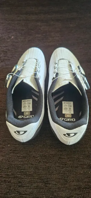 Zapatillas de ciclismo de carretera Giro Regime en color blanco y talla 42. Cuentan con un sistema de cierre doble BOA. Vendo por no acertar con la talla. Están nuevas de dos usos cortos. - 2 usos cortos (70kms en total) - Cierre doble BOA. - Color blanco. - Talla 42.
