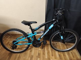 Bicicleta DENBIKE con suspensión delantera y trasera. La vendo porque mi hijo no la utiliza, lo hizo tan solo una vez. Solamente haría falta inflar un poco las ruedas por el deshueso. - Color negro y azul. - Ruedas de 20 pulgadas. - 18 velocidades.