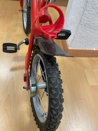Bicicleta infantil de color rojo, ideal para los más pequeños. - Ruedas con dibujo para un mejor agarre. - Pedales negros. - Guardabarros delantero.