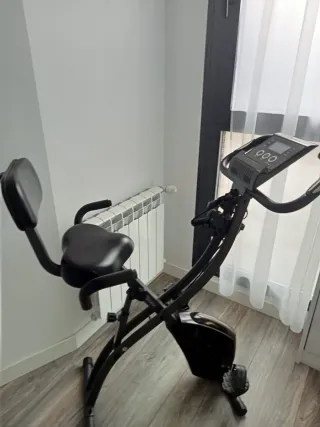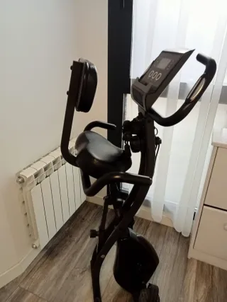 Bicicleta estática plegable, ideal para entrenar en casa. Su diseño permite guardarla fácilmente. - Estructura plegable. - Altura del sillín regulable. - Ruedas para transporte. - Medidor de pulso - Pantalla led - Asiento con respaldo - Resistencia ajustable
