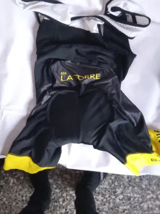 Conjonto de 3 Culote de ciclismo Pissei. - Tejido negro. - Badana de color rojo y verde lima.