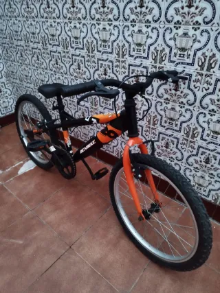 Bicicleta infantil de color negro con detalles en naranja. Ideal para los más pequeños. - Cuadro resistente. - Ruedas de buen tamaño. - Diseño deportivo. Tiene ruedines, aunque no los lleva puestos