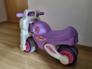 Moto de juguete de la marca Feber, en color rosa, lila y blanco. - Diseño inspirado en una moto. - Ruedas anchas para mayor estabilidad. - Manillar con detalles de velocímetro.