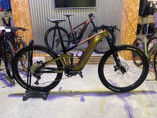 Bicicleta eléctrica Giant Trance E+ en color dorado y verde iridiscente. Talla L. Prácticamente nueva, 800km. Bateria 800wh Talla L Grupo shimano slx Horquilla fox rythym 36 150 Amortiguador fox float 140 Tija telescópica giant Deslimitada, se puede quitar deslimitacion. Se puede mandar foto de la app del estado de ma bici y km.