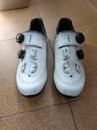 Botas de ciclismo Shimano RC7 número 44. Usadas 6 meses algún roce pero en perfecto estado. Se entregan con calas. Se mandan en caja original. - Cierre BOA. - Color blanco. Palabras clave, no leer: Shimano, Trek, specialized, canyon, enjoy, abus, BH, megamo, flaca, ekoi, carretera, bici, zapatillas....