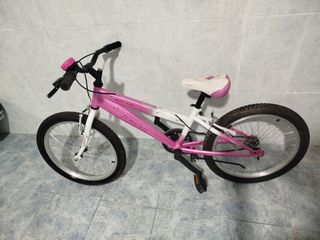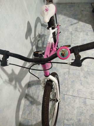 Bicicleta de 20 pulgadas en excelente estado, con muy poco uso. - Color rosa y blanco. - Sillín con diseño floral. - Incluye timbre. - Ruedas con buen agarre.