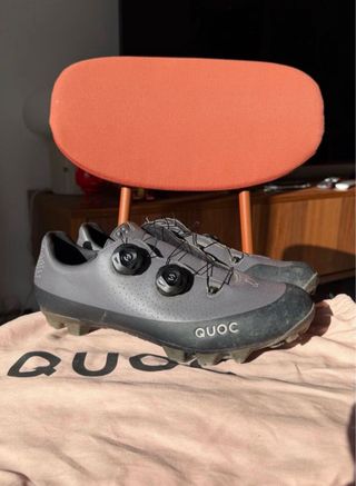 Zapatillas de ciclismo de la marca Quoc. - Cierre con sistema BOA. - Color gris oscuro. - Suela con tacos para agarre. Están como nuevas, las he usado 2 veces porque me están un pelin justas