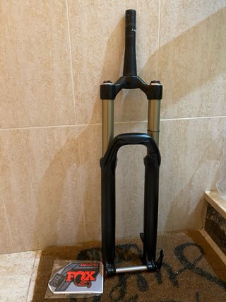 Horquilla de suspensión Fox 34 con 160mm de recorrido. no boost 15x100 tubo cortado a 16,5cm - Incluye pegatinas rojas Barras perfectas, no tiene mucho uso, suavidad garantizada. Nada que ver con rock shox no funciona el bloqueo, no me di cuenta porque no lo usaba el ajuste del rebote con la rueda inferior funciona perfecto